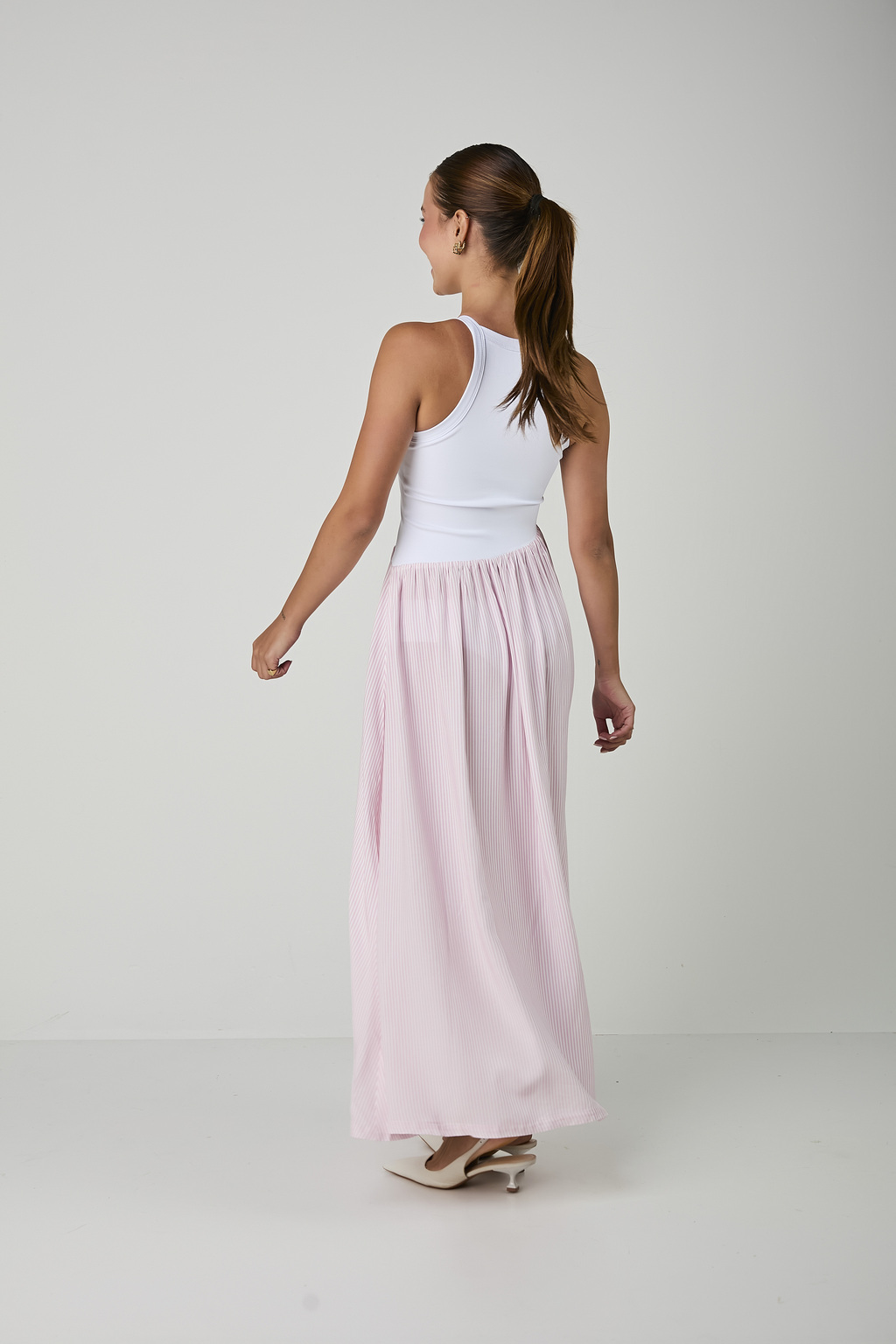 O Vestido Aura traduz sofisticação e leveza em uma peça única. Com busto ajustado que valoriza a silhueta feminina e saia longa fluida em tecido leve, ele combina conforto e estilo em perfeita harmonia. A estampa listrada traz modernidade e movimento, enquanto o recorte assimétrico na cintura adiciona um detalhe atual e cheio de personalidade. Forrado na parte superior, garante segurança e bem-estar durante o uso.